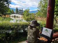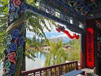 Gorgeous view over the lake at heilongtan (black dragon pool) at Lijiang. I took a ride to the museum and walked southwards (in the direction of old town) and arrived at this photo spot (at the cafe/coffee house) just before golden hour 515pm in Sep (golden hour at 530pm, sunset at 7pm). I would have liked to stay for sunset but they had packed away all the tables and chairs (which also meant that I didn't have to buy a drink). cafe closes at 530pm. tips. most of the places with timings close at 530pm, but some places start much earlier, like the house in the 7th photo that we could visit. they prohibited entry at 445pm and all visitors made their way out by 450pm. museum does not open on Mondays the South entrance is the most busy/packed. go northwards and you'll experience much more peace and tranquility.