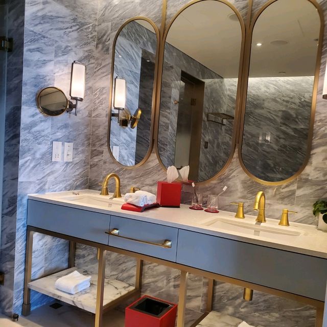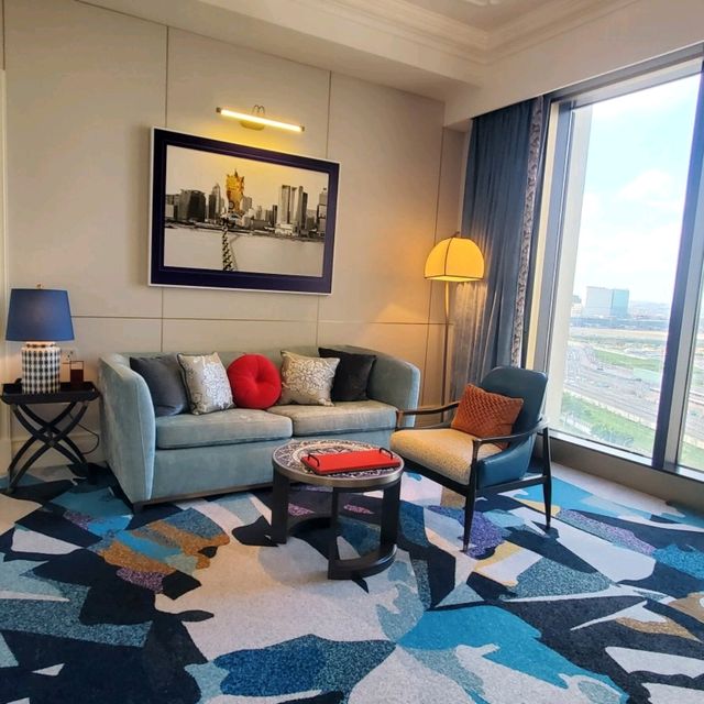 Recently dealing with new house renovation 🧰 things have not stopped. Taking advantage of my husband's birthday🎂, I booked Macau Upper Lisboa Comprehensive Resort to rest and celebrate🎉. I chose this hotel because it opened during the pandemic in 2021, the facilities are relatively new, and due to the new house decoration, I wanted to refer to the new elements of the new hotel, I heard that its breakfast is also very good😋. This time I booked a Junior Suite🤟, the room is very spacious, the design blends modern, noble, intelligent as one, fully showing the new generation of Macau culture style. Once you enter the room is the living room + guest toilet, along with the master bedroom has floor-to-ceiling glass, full of lighting, and can enjoy the city view of Cotai, the furniture is brightly colored, with wall art hangings 🖼, full of vitality. The whole room is a smart button face, you can control the curtain switch, lighting brightness, air conditioning temperature, etc., very convenient, see the room so beautiful, beautiful mood. Entering the master toilet + cloakroom, there is another feeling, the walls and floor are paved with white and gray marble, with all the lace gold faucets and bathroom hangings, feeling both harmonious and noble ✨️. Be aware, however, that the charger in the room is slower to charge. #MacauHotel #UpperLisboaHotelMacau #UpperLisboaComplexResortMacau