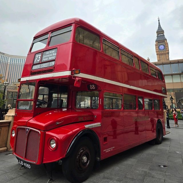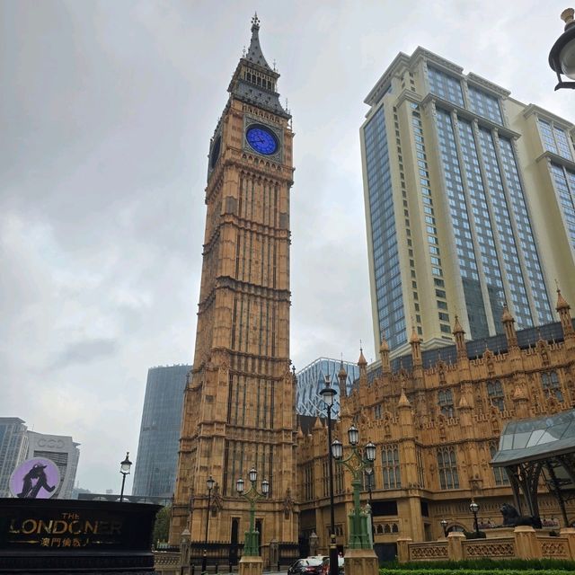 First time in Macau with The Londoner Macao A stunning landmark that impresses at every corner, beautifully replicating the city of London, England, right here in Macau. No need to fly all the way to England anymore! Inside The Londoner, you'll find a luxurious hotel, entertainment venues, and upscale restaurants. There are countless photo spots to explore here. Just noticed that the face of the Big Ben clock is digital—such a unique touch! You can get here by bus, Metro, or even on foot (though it's quite a few kilometers 🤣). It's conveniently located near the airport, making it easy to visit.