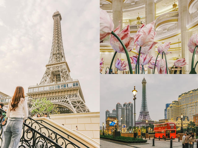 Macau's Cotai Mini-City, a new mini-city that feels like a European city because they have brought all the important landmarks, from Big Ben to the Eiffel Tower, but they are larger and look like the real thing. If the weather is nice, put on a cool costume, walk around with your hands in your pockets, and pose for a photo. Anyone who sees you will definitely say that you are in Europe. The Londoner is a shopping mall, casino, and hotel that is themed after London, England. From the iconic red bus of London that has been around since 1966, the most amazing thing is the Elizabeth Tower or Big Ben that is as tall as the real thing! So awesome!!! In addition, there are 13 check-in points inside and around the area for you to take photos. Walking a little further, we were unexpectedly transported to the fashion city of Paris. This is the Eiffel Tower of The Parisian Hotel, a casino resort themed after France. We have to give in to its grandeur. In addition to the many photo spots, such as the front of the hotel, the park on the opposite side, and many corners, there is also a Grand Illumination Show. #MacauTravel