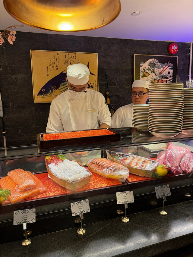 Macau is renowned for its diverse culinary offerings, and the buffet dinner at Buffet Hill is undoubtedly a paradise for seafood lovers. The variety of seafood here is astonishing. Steamed seafood retains the original flavors of the ingredients, with a fresh and sweet taste that spreads across your palate. The Typhoon Shelter-style preparation adds a crispy and spicy kick, tantalizing your taste buds, while the ginger and scallion stir-fried seafood combines aromatic flavors for a rich and satisfying texture. The sashimi section is a highlight, featuring carefully selected fresh fish. Thick slices of salmon and tender sweet shrimp melt in your mouth, offering a true gift from the ocean. At Buffet Hill, you can indulge in seafood prepared in various styles and experience the charm of Macau's cuisine. Such a feast is not to be missed!