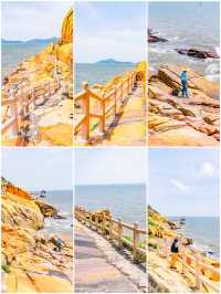🇲🇴 Macao's Hidden Gem | The stunning seaside trail at Hac Sa Long Chao Kok Family Trail! 🏞️ Reasons to Visit: A secret spot to listen to waves crashing against cliffs! Macao's wildest coastline 🌊 🚌 Transportation Info: 📍 Next to Hac Sa Beach in Coloane (Take Macao bus 15/21A directly) 📸 Must-Visit Spots: 1️⃣ Long Chao Kok Viewing Platform 270-degree breathtaking sea views! Giant wind-eroded rocks resemble a dragon's claw reaching into the sea 2️⃣ Sea Listening Pavilion White pavilion among reef rocks, with incredibly soothing sounds of waves 🕶️ Travel Tips: • 1.5km wooden boardwalk (wear anti-slip shoes!) • Best visited at dusk for sunset photos (golden light piercing through rocks is amazing) • Geological explanation signs along the way (volcanic rocks are perfect for photos) 🍴 Nearby Food: Portuguese-style roast suckling pig at Hac Sa Beach barbecue stalls! Crispy and flavorful perfection