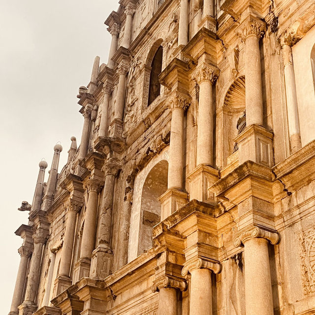 #chinatravel ### **🌍 Why Visit the Ruins of St. Paul’s?** - **Macau’s #1 Landmark**: The towering stone facade is all that remains of a 17th-century **Jesuit church** (destroyed by fire in 1835). - **UNESCO World Heritage Site**: Part of Macau’s historic "**Historic Centre of Macau**" listing. - **Cultural Fusion**: Intricate carvings blend **Christian saints**, **Chinese dragons**, and **Portuguese motifs**. --- ### **📍 What to See & Do** 1. **The Grand Facade** – Climb the stairs for a close-up of its **bronze statues** and hidden symbols. 2. **Crypt & Museum** – Underground exhibits showcase **sacred art** and church relics. 3. **Fortress Hill (Monte Forte)** – Right behind it! A 16th-century fort with **panoramic city views**. 4. **Senado Square** – A 5-min walk away, lined with pastel **Portuguese colonial buildings**. --- ### **📸 Pro Tips for Visitors** ✔ **Best Time**: Early morning or sunset (avoid midday crowds!). ✔ **Photo Hack**: Stand at the base of the stairs for the **perfect upward shot**. ✔ **Nearby Eats**: Try **Portuguese egg tarts** at *Lord Stow’s* or *Margaret’s Café*. --- ### **🚌 How to Get There?** - **From Macau Ferry Terminal/Taipa**: Take bus **3, 3X, or 10A** (10–15 mins). - **Walking**: 15 mins from Senado Square (follow the wave-patterned cobblestones!). --- ### **🎭 Fun Fact** The facade survived **typhoons, fires, and wars**—locals call it "Macau’s lucky charm." --- **Ready to touch a piece of Macau’s soul?** ✨ *(Want a hidden alleyway route or combo-ticket tips? Ask me!)*