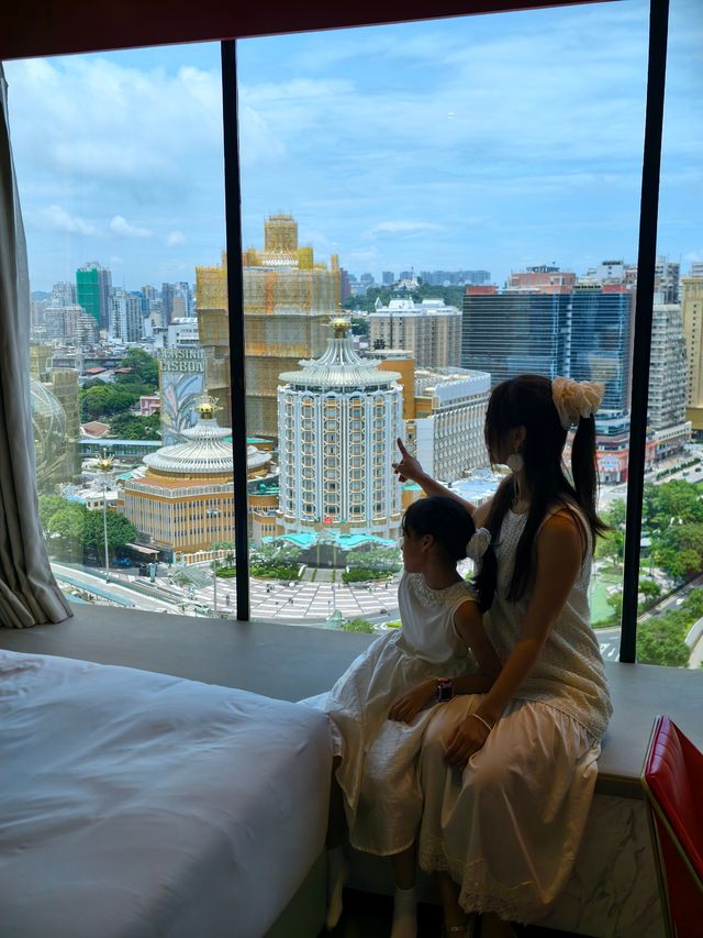 This summer vacation, four adults and one child traveled together, and I chose YOHO Golden Silver Island Hotel. Its excellent location made my itinerary planning very smooth! 🚗 Right downstairs is the Yama La Qian Di 🚍 transportation hub, with direct buses to everywhere~ 🚶 You can walk through the underground passage 🉑 to Wynn Macau, MGM, StarWorld, and Grand Lisboa, no worries about sun or rain. . 👪 Star Shine Family Suite (Resorts World) (P11-14) 🔹 A family suite suitable for three generations living together! The bay window in the room offers a panoramic view of Grand Lisboa. 🔹 Duplex design, upstairs has a 2.2-meter king bed, downstairs has two 1.25-meter beds, connected by stairs. 🔹 Both floors have independent white marble bathrooms, perfect for photos 🚻 double bathtubs 🛁, double sinks, double makeup mirrors~ . 🏊 Macau’s stunning infinity pool (P1, P8) The hotel’s outdoor pool on the second floor faces Macau Tower and Guia Hill, a perfect sunset photo spot and an excellent viewing point for Macau fireworks 🎆 shows. . 🎮 All-in-one dining, entertainment, and shopping: (P15-16) 🔹 Right downstairs is YOHO Golden Silver Island Mall and Galeries Lafayette, with many shopping 🛍 and dining options. ✅ Pop Mart: Macau’s 🙋 S-level store, with a huge "Molly Experience Zone," featuring many styles not found elsewhere! ✅ Bona International Cinema: 🈶 children’s screening room, movies available in Cantonese, and the lounge is also a beautiful lake-view photo spot~ 🔹 We received many coupons upon check-in. My daughter used a 30💰 no-threshold coupon to buy lots of drinks 🍹 at the convenience store, many of which are not usually available in Guangzhou. . 🚍 Transportation tips: 1⃣ Cross at Gongbei, then take the hotel’s free shuttle bus. 2⃣ Take Macau bus 3/3X and get off at “Yama La Qian Di.” 3⃣ Take the Grand Lisboa or MGM fortune car, then walk 5-10 minutes.
