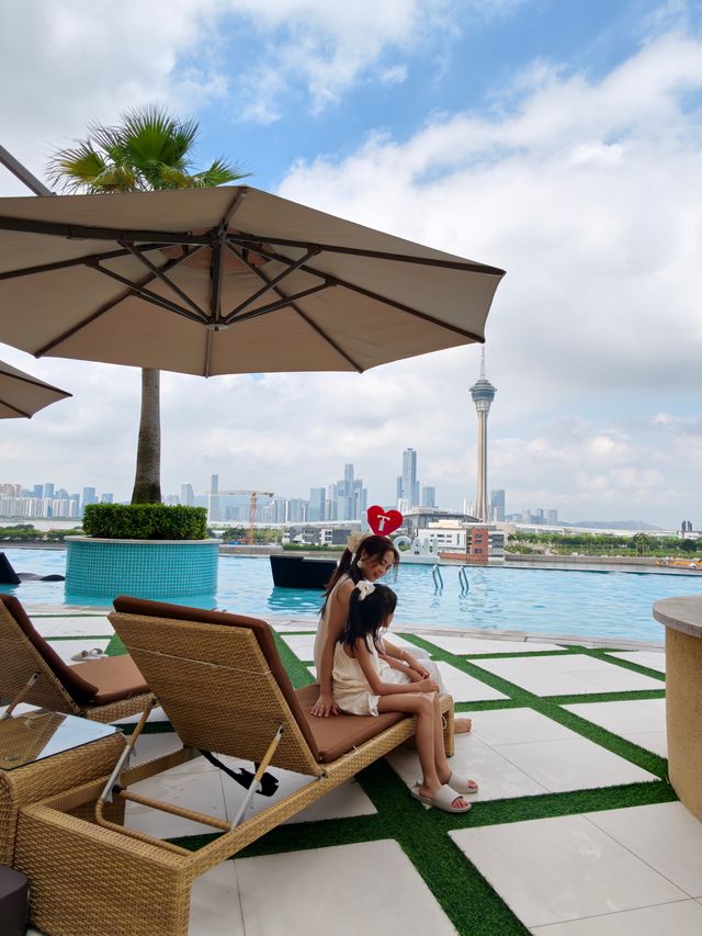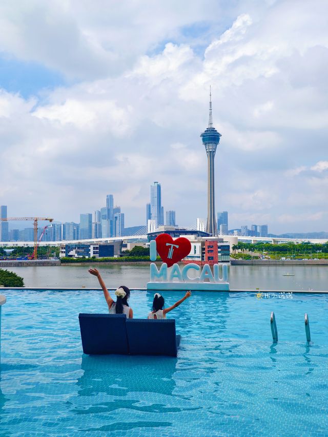 A hidden gem under the Macau Tower! The infinity pool and the city skyline are in the same frame, making it easy to take magazine-worthy photos