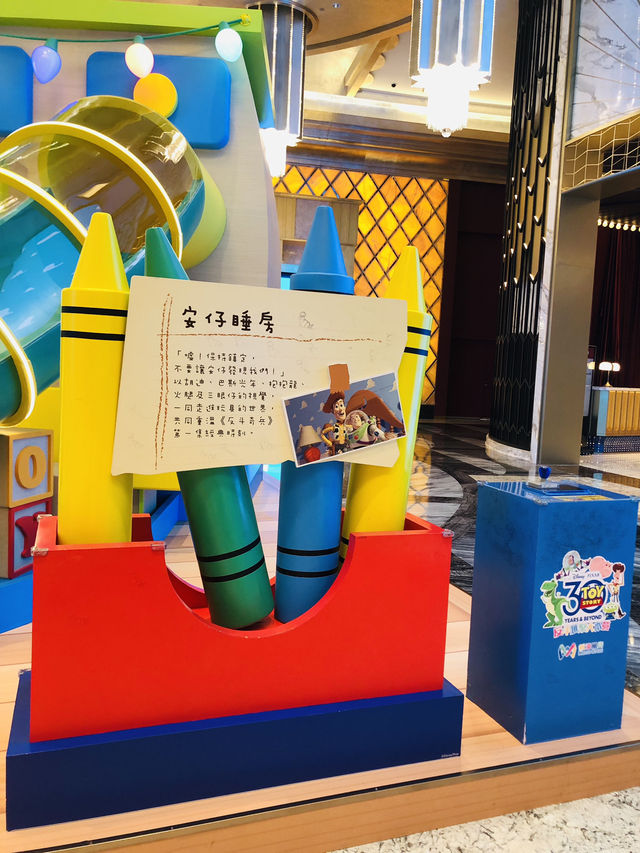 #9月好地方2025 Stepping into the Star Club Hotel at Studio City Macau 🏨 is like stepping into the Toy Story universe! Iconic Buzz Lightyear figures are everywhere, from the lobby to the hallways, offering a surprising twist. The interstellar hero strikes a variety of stylish poses, inviting guests to take photos. Every corner is a unique photo-op: some recreate classic movie scenes, others are brimming with futuristic sci-fi, reminiscent of a vibrant amusement park. Children and adults alike couldn't help but exclaim in wonder, busy creating joyful memories with Buzz Lightyear. This isn't just a hotel; it's a magical journey filled with childlike fun and imagination!
