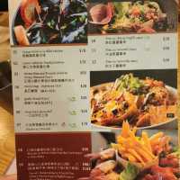 [Handmade giant octopus pasta at a hipster cafe in downtown Mong Kok]