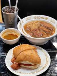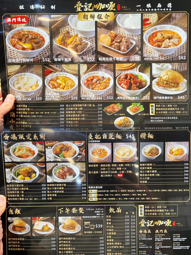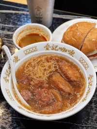 This restaurant is located on Prince Edward's Fa Yuen Street, near the Flower Market. It comes from a 77-year-old Macau establishment, with the original secret family recipe passed down to this day. . The interior is spacious and comfortable, decorated mainly in black. All food and drinks are made to order. . Tip Kei Self-Selected Noodles - $45 Served with a special spicy sauce, a curry sauce simmered with over a hundred spices, with adjustable spiciness. The elastic, thin noodles are especially springy; two Swiss chicken mid-wings have a fragrant sweet sauce, tender and juicy without dryness; the braised beef brisket has tendons, meat, and marbling, full of chewiness and rich meat juice, plus collagen-rich beef tendon, tender and not greasy. . Pork Chop Bun - $39 The golden crispy bun is not greasy, spread with a layer of butter, and the pork chop is fried to a fragrant, non-dry texture. . Iced Lemon Tea +$9 Made with Ceylon black tea, rich in tea flavor with a refreshing lemon aroma. -———————— Tip Kei Curry Address: Shop A, G/F, 224 Fa Yuen Street, Prince Edward Foodie Great Place