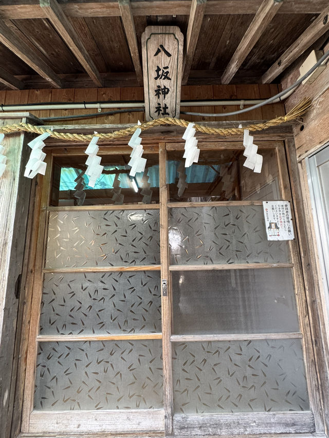 At the end of a quiet lane, I came upon Yasaka Shrine. It lacked a grand torii gate or a magnificent shrine, simply a small wooden shrine, standing quietly. The sliding doors, covered with translucent patterned glass, bore the marks of time. The shimenawa ropes and white paper hangings beneath the eaves swayed gently in the breeze, reminding us that this is still the abode of the gods. Standing before the gate, I felt not prosperity but a sense of protection close to the heart. Yasaka Shrines, often enshrined throughout Japan, are known for their deity, Susanoo, a symbol of protection and protection. Perhaps, precisely because of its simplicity, it is closer to the essence of faith—not for grandeur, but for peace of mind.