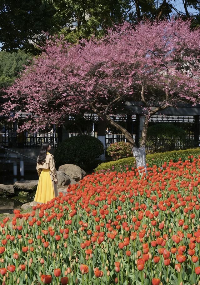 Warm sunlight passes through the branches 🌤️ Coating the pink Longmei with a honey color From afar, it looks like pink mist lingers 💖 Every blossom sparkles with dewdrops ✨ 📸 Photo Tips from Experience: 1️⃣ Arrive before 8:00! Fewer people and soft light make the best shots~ 2️⃣ Always shoot from a low angle! Avoid crowds and capture flowers with the blue sky 3️⃣ Backlighting makes the petals glow ✨ 4️⃣ Bring a small stool 🪑 for ultra-low angle close-ups of petals 5️⃣ Wear light colors 👗 Yellow dresses go perfectly with pink flowers! 🍃 Flower Viewing Tips: ✓ Weekday mornings have the fewest people ✓ Only 10 days left in bloom, hurry up! ✓ Benches along the path for resting ✓ Remember to bring mosquito repellent 🦟 📍 Location: Ri Lake Park, Ningbo ⏰ Opening Hours: 6:00-18:00 🎫 Admission: Free! Outfit Tips: Yellow dress + straw bag 🧺 Japanese-style uniform + beret 👒 New Chinese-style mamian skirt also matches perfectly! 💭 Random Thoughts: Although weekends are overwhelmingly crowded... Seeing the flowers instantly healed me! Planning a second visit next Wednesday~ Anyone else going? 🙋‍♀️