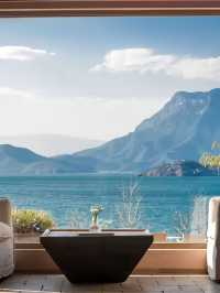 I drove 4 hours on mountain roads to Lugu Lake for this 270° lake view window!