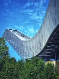 | Ski Jumping in the Snowy World. Our group of five flew from Helsinki, Finland to Oslo, Norway on May 26, 2018, to start a 6-day trip to Norway. Along the way, our main sightseeing spot was the world-famous fjords of Norway, but since we were in Oslo, we couldn't miss the representative attractions of this place - such as the ski jumping platform in Holmenkollen 🏂. Holmenkollen is Norway's most famous ski resort 👍, located about 13 kilometers northeast of Oslo, with a towering peak of 371 meters above sea level. Although it is not high, in Norway, 'Holmenkollen' has the same meaning as 'Olympic' in Greece. Since 1892, a grand ski festival has been held on the first Sunday of March every year on Holmenkollen Mountain. At that time, skiers from all over the world will gather here, but unfortunately, I didn't catch up when I went there 😔. And this time our sightseeing focus is the Holmenkollen ski jump (Holmenkollen ski Jump). This ski platform located halfway up the mountain is a sight of Holmenkollen Mountain. According to the online description, 'a cement pillar about a hundred meters high supports a ladder-like 'white rainbow', with a steep slope in the middle that gets wider as it goes down, with a slope length of more than 100 meters. The circular stands on all sides, like the stands of a football field, can accommodate tens of thousands of spectators 👍. Brave buddies can also try the zip line at the top, it is said to be very exciting 🤩~