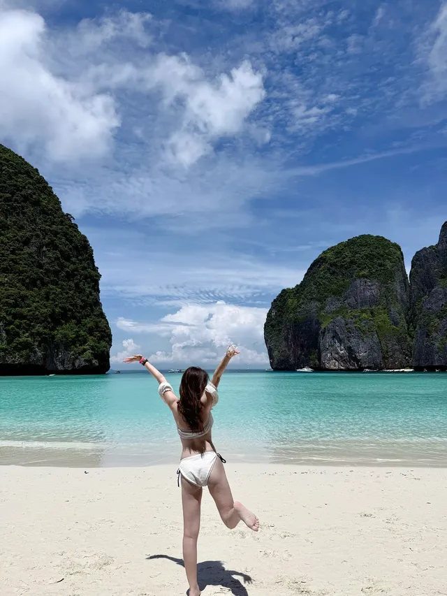 Coming to Thailand for the second time, I am still super excited about Thailand's beaches 🥰 This time, I took an island-hopping trip in Phuket and visited Maya Bay, the filming location of the movie "The Beach" starring Leonardo DiCaprio! Maya Bay is truly stunning. If you have a Phuket itinerary, you must check it out! Sunshine, sandy beaches, and white clouds— all worries disappear the moment you see the bay 🥳🌴