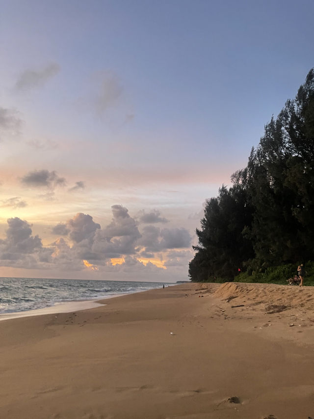Mai Khao Beach, located next to Phuket International Airport, is a popular spot for watching planes take off and land in Phuket, a favorite spot for taking photos. However, we forgot to take a photo of the planes. We were about to leave, and seeing that Mai Khao Beach is close to the airport, we stopped by just as the sun was setting. It's just as beautiful as Promthep Cape. It's a quiet beach. There were quite a few people there when we visited, but not too many. 📍Address: Thalang District, Phuket 💞Recommended: Quiet, beautiful sea, beautiful views 🏖️Environment/Facilities: Beachfront parking available #PhuketTravel #TravelPlan #NatureAttractions