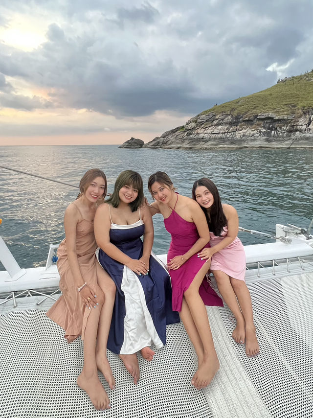A luxurious experience you must try! Sail out into the crystal-clear Andaman Sea 🐠 Admire stunning islands like Coral Island, Maiton Island, or Racha Island 🏝️ And enjoy the breathtaking view from Promthep Cape 🌈 Onboard, you'll find food, drinks, music, and a relaxing atmosphere 💕 We recommend the Sunset Cruise for the most romantic sunset view over the sea 🌅 📍 Departure Point: Yacht Haven Marina / Chalong Pier, Phuket ⏰ Available in morning, afternoon, and evening slots (choose based on your package) Bonus: Free dinner and a professional photographer to capture your trip moments. Afternoon Schedule (1:00 PM – 7:00 PM): 11:30 AM – 12:00 PM: Hotel pick-up and transfer to Chalong Pier. 1:00 PM: Depart from Chalong Pier heading to Coral Island by yacht. 2:00 PM: Depart from Rawai Pier towards Coral Island. 5:00 PM: Enjoy dinner onboard the catamaran yacht while taking in the stunning sea views. 6:30 PM: Depart from Coral Island and capture the sunset from the yacht on the way back. 6:30 PM – 7:00 PM: Arrive back at Chalong Pier.