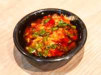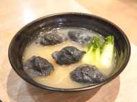 Special garlic sauce with raw fried pork chop! And handmade cuttlefish dumplings!!