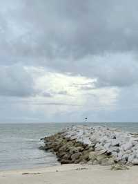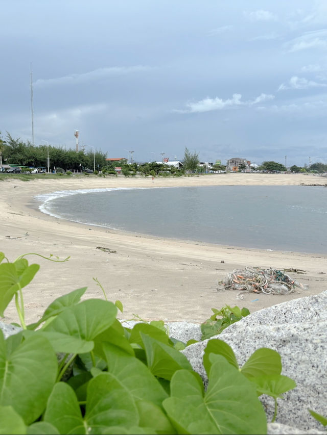 #Let's talk about travel A beautiful beach that curves into the shape of the moon is another landmark of Rayong Province. Because taking pictures comes out beautifully and softly. Because the white sand beach contrasts with the sky on the day we went. It was drizzling and the sun was not strong. The pictures still came out beautiful. Anyone who passes by this area can stop by to sit and relax or take pictures. For us, we drove our own car and stopped to take pictures. You can park on the side of the road next to the beach. Then we traveled to the next destination. Open the map to search for: Saeng Chan Beach Coordinates: Tambon Phe, Mueang District, Rayong #VisitRayong #RayongSea #VisitTheSea #VisitRayongSea