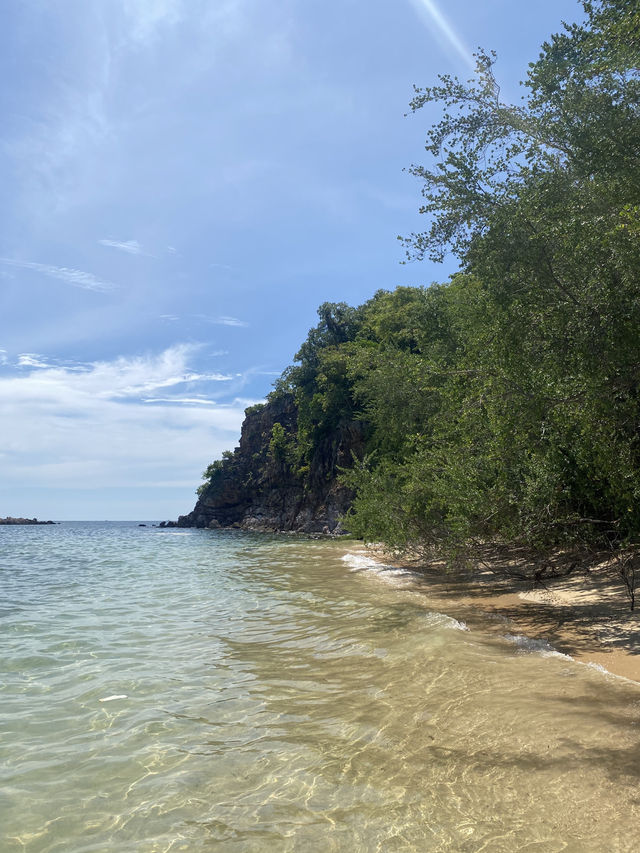 #GetDiscountsWithoutLuck 📍Koh Kham is an archipelago located on Koh Samet, Ban Phe Subdistrict, Mueang District, Rayong Province. 💚Today, we chose the one-day trip program for 890 baht. It takes about 20 minutes by speedboat from Koh Samet. 🌴I like Koh Kham because it's a small, quiet island with a very natural setting. The water is crystal clear and beautiful, with a clear sky. 🌴Every angle is beautiful for taking photos. 🌴You can even see the parted sea. 🌴There's also a colorful stone monument to admire, which is very charming. 🌴You can swim and relax on the beach comfortably because the sea and beach are very clean. 💚Koh Kham's rule is that food and drinks are not allowed on the island to prevent litter and preserve nature. #KohKham #KohSamed