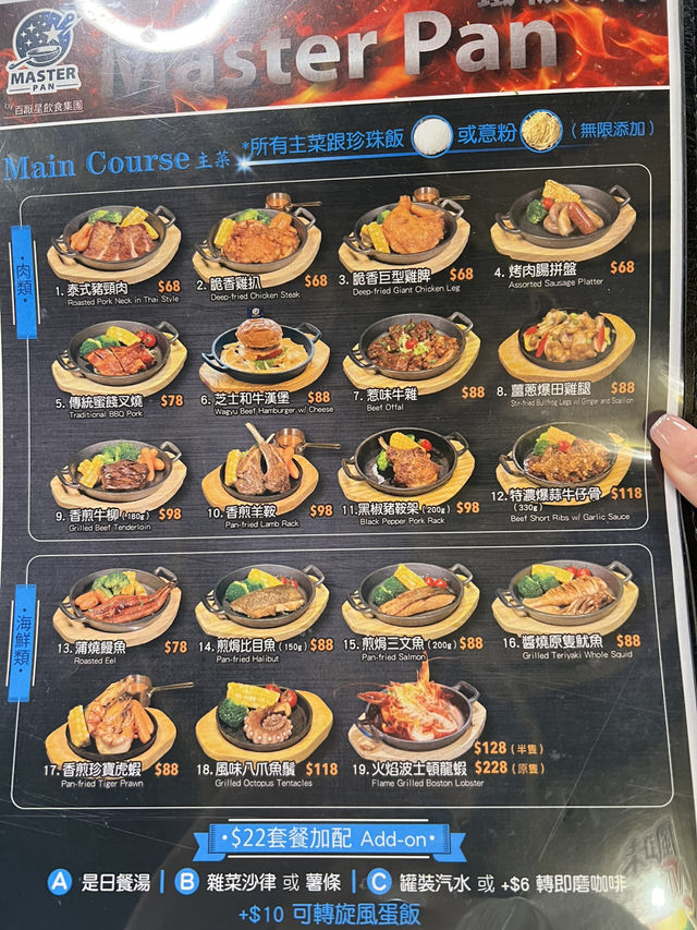 Today, I went to Sha Tin for dinner with my family. The teppanyaki main menu here for dinner is really cost-effective, affordable prices, and you can have unlimited rice or pasta~ The waiter quickly arranged a seat for us. We started by ordering the "Mushroom Cream Soup," which was rich and smooth. We also ordered the "Crispy Soft Shell Crab" and "Grilled Dried Pufferfish." The soft shell crab was fried to a golden crisp and very tasty; the dried pufferfish was moderately salty and fragrant, making a pretty good snack~ For the main courses, we ordered the "Black Pepper Pork Saddle" and "Pan-Seared Beef Tenderloin." The black pepper pork saddle was perfectly pan-fried on the outside, tender on the inside, paired with a rich black pepper sauce, and tasted excellent! The pan-seared beef tenderloin needs no further explanation; the beef was cooked just right, crispy outside and tender inside, served with fries, making it a truly enjoyable meal. For drinks, we also ordered a large cup of "Perfume Lemon Duck Shit Tea." This drink was refreshing and thirst-quenching, especially suitable for summer, and drinking it made us very happy! The portions were generous, and the price was very reasonable. The total for the evening was only 298 HKD, which is quite a good deal~ Teppanyaki Master (Sha Tin) Shop 3107-3108, 3rd Floor, Fortune Centre, 1-15 Wang Pok Street, Sha Tin ~~~~~~~~~~~~~~~~~~~~~~~~~~~~~~