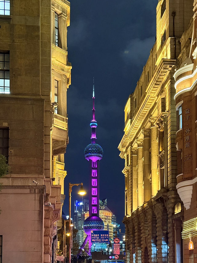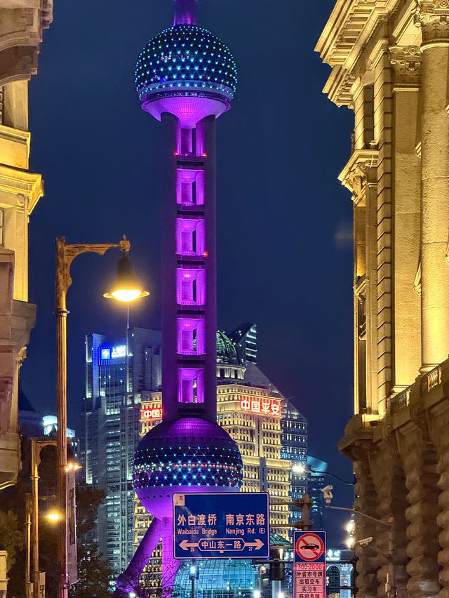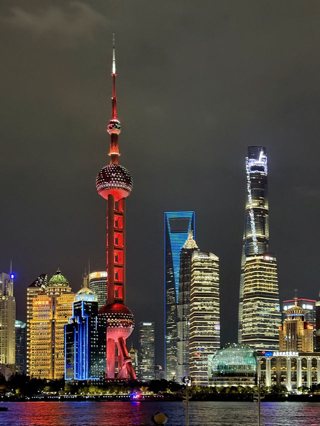 The Bund is a historic riverside district in Shanghai that began to develop in the 19th century when China opened its doors to Western trade. The area is home to classical European-style architecture, including banks, embassies, and trade offices, reflecting the era when Shanghai was a global financial and trade hub. Today, The Bund remains a significant landmark where tourists come to admire the beauty of its historic architecture while enjoying views of the modern skyscrapers in Pudong across the river. Every day at 6:00 PM, the lights of the old European-style buildings along the river are illuminated, exuding a luxurious yet vintage charm. It feels like stepping back in time to Shanghai's golden age in the 19th century. Looking across the river, the iconic Pearl Tower, adorned with colorful lights that change constantly, creates a modern contrast to the European buildings on the other side. The reflection of the Pearl Tower on the water is truly beyond words.