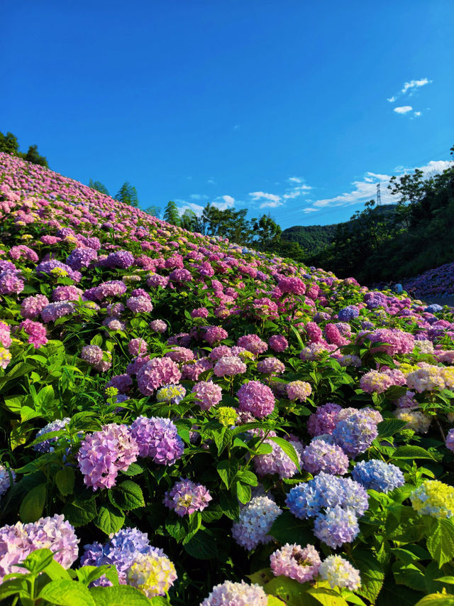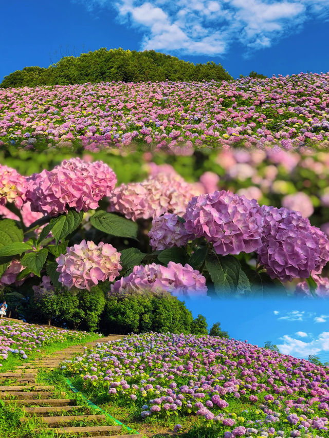The hydrangea sea at Shaoxing Lanting is a must-see! Stepping into Lanting feels like entering a vibrant and magical world. Vast fields of hydrangeas bloom freely, with pinks that are charming, blues that are serene, and purples that are romantic. The kaleidoscope of colors is truly mesmerizing. As the gentle breeze passes through, the flowers sway lightly, as if dancing gracefully. Strolling among them, the lingering floral fragrance is refreshing and uplifting. The scale of the flower sea here is immense and spectacular, making every casual photo a stunning masterpiece. At Lanting, you can not only immerse yourself in the cultural heritage of this calligraphy sanctuary but also indulge in the dazzling beauty of the hydrangea sea. Come and experience this romantic floral feast!