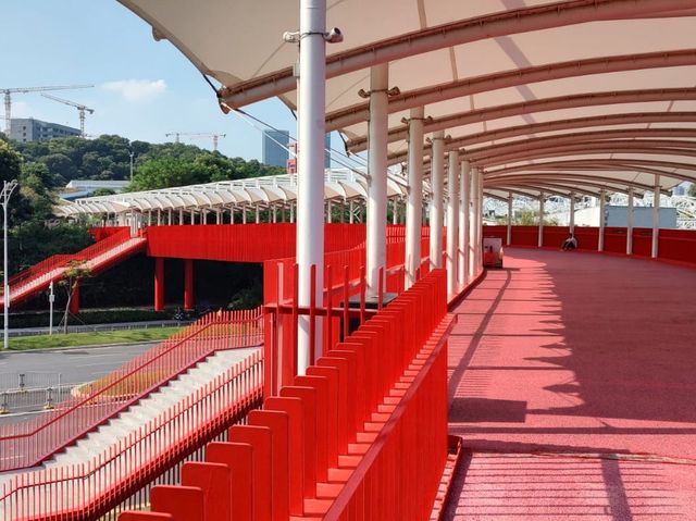 Address- Intersection of Guangming Kelin Road and Chalin Road, Guangming District, Shenzhen Transportation- Take bus from Guangming Avenue Station on Line 6 to Hongqiao Park Station Features- Long red bridge like a ribbon Rating- 80 This holiday I chose to explore the most beautiful "Sky Park" in Shenzhen Hongqiao is 4 kilometers long. The entire Hongqiao is surrounded by white clouds and green mountains. From a distance, it looks like a flowing red ribbon 🎀 It is very spectacular and beautiful. There are many places to check in. The park is densely packed with trees. Walking in the natural ecological corridor is refreshing. Take a walk, run, picnic here🍱🥤🧃 It is really relaxing. The roof of the entrance is designed with large steps. You can sit and check in and take pictures to watch the sunset🌄 You can check in here all day. It is a good choice to get away from the city and breathe fresh air here #Check in #Weekend Tour #Check in