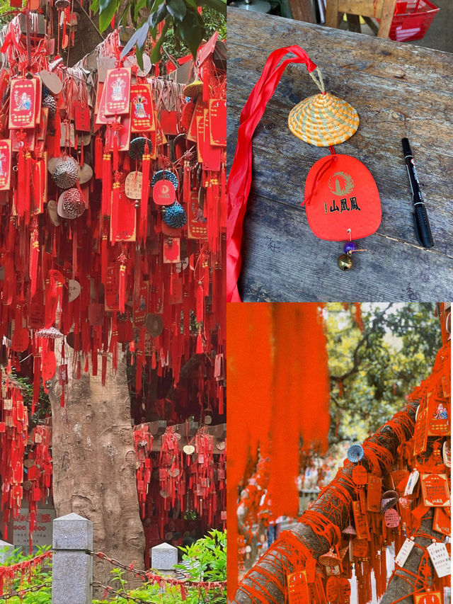 Phoenix Mountain Forest Park (with the Fengyan Ancient Temple inside) is located in Fuyong Street, Bao'an District. I heard it's famous for praying for love and finding love, so I took advantage of this weekend to hike up the mountain and check in! 🕖 The total visit takes about 4 hours. 🚏 Transportation: 1⃣️ Take Metro Line 11 to Exit B at Tangwei, then transfer to Bus M284 to the foot of Phoenix Mountain. 2⃣️ However, the bus ride can take over half an hour. I took a taxi from the subway on the way there and took the bus to the subway station on the way back. The one-way taxi fare was under 20 yuan. 👟 Equipment: 1⃣️ Phoenix Mountain isn't very physically demanding, but it's mostly stairs and cobblestone paths, so remember to wear sportswear, sneakers, or athletic sandals. River tracing is more fun (jeans, flip-flops, etc., no need!). 2⃣️ Wear sunscreen. Bring: Sun hat and sun-protective clothing (don't wear a hat while praying). 3⃣️Other basic hydration options include water, cucumbers, and other essentials. There are plenty of shops and hot water outlets on the mountain, so bring your own cup. 4⃣️ Bring some coins to drop into the turtle pond and make a wish. 🥡Supplies: 1⃣️ Incense is sold at the foot of the mountain, 5 yuan for a small bag (about 20 sticks). Incense is also sold at the top of the mountain, starting at 3 yuan for 3 sticks. It's cheaper at the bottom, or you can bring your own. 2⃣️ At the bottom of the mountain, there's also fishing nets, buckets, and other supplies for river tracing, as well as sun hats. Supplies are plentiful. Purchase as needed; I didn't buy anything else except the incense. ⛰Route: 1⃣️ To the right of the large "Phoenix Mountain" stone monument is the closest and fastest hiking trail, estimated to take about half an hour. 2⃣️ A little further to the right is the river tracing trail and the winding mountain road. 3⃣️ You can ascend the mountain as quickly as possible, then take your time descending the stream. (The water upstream should be clean.) 🙆🏻‍♀️ Praying/Enjoying: 1⃣️ The Buddha's Light, Turtle Pond, Fengyan Ancient Temple, Marriage Tree, Wishing Corridor, and Earth God are all quite visible and easy to spot. I didn't see anyone asking for fortune sticks, so I was careless. 😭 2⃣️ Wishing plaques are available for sale near the Marriage Tree and in the Wishing Corridor, priced at NT$30 and NT$25. There are also desks and markers for writing. 3⃣️ Wishing plaques must be hung in the Wishing Corridor. There are small stools at the bottom for visitors to climb onto. If you hang them elsewhere, they may be cut off by the staff. But I still died two times 😬 ⛰Other: 1⃣️ Going up the Wishing Corridor, you'll reach the second trail. After about 20 minutes, you'll see another beautiful view (with large rocks). 2⃣️ The way down includes a winding road and a river tracing trail. The third river tracing trail is more fun, with many families and children enjoying it. There's also a fortune teller along the way... I hope everyone enjoys their time at Phoenix Mountain.