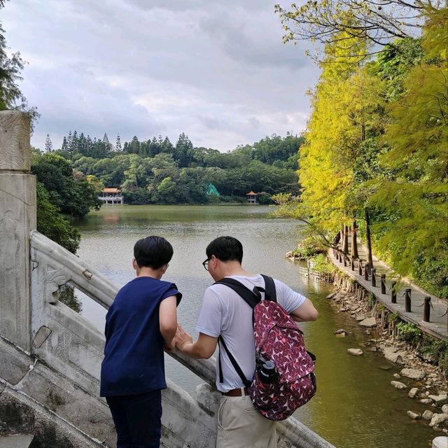 The Fairy Lake in Shenzhen Fairy Lake Botanical Garden is like a gentle jade hidden at the edge of the city, nestled quietly among lush green mountains 🌳💧. The crystal-clear lake reflects the blue sky, white clouds, and the surrounding tropical plants, with shimmering ripples occasionally graced by a black swan gliding by, making it impossible not to snap a photo 📸. Strolling along the lakeside, you'll find yourself surrounded by dense greenery 🍃. At the Fern Garden, mist rises like a delicate veil, creating an instant fairyland vibe! The golden roof of Hongfa Temple peeks through the trees, with the occasional sound of bells adding a soothing touch 🧘♂️. This place offers both the charm of nature and the beauty of landscaped gardens. If you're looking for a getaway to escape the chaos and refresh your spirit, the Fairy Lake Botanical Garden is the perfect choice! All of Shenzhen's most poetic and vibrant essence is captured right here 💚. Shenzhen Fairy Lake Botanical Garden Address: 160 Xianhu Road, Luohu District, Shenzhen Opening Hours: 07:30-18:30 (Summer), 08:00-18:00 (Winter)