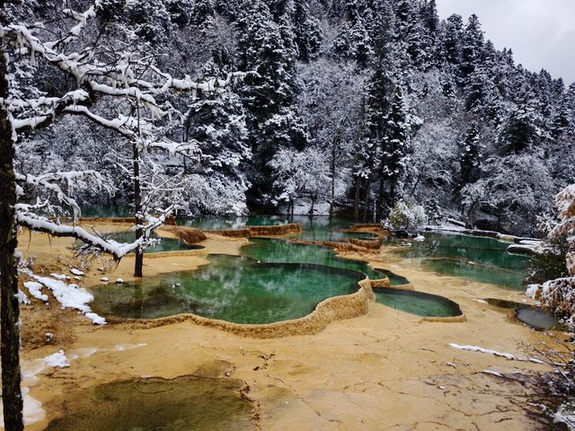 If you're planning a trip to Sichuan, the Songpan-Huanglong route is a dreamy route you can't miss! The Huanglong Scenic Area boasts a breathtaking array of colorful ponds, snow-capped mountains, and traditional Tibetan and Qiang architecture. Every scene is breathtakingly beautiful. During snowfall, the entire area is bathed in a blanket of white—the traditional architecture against the backdrop of the snow creates a fairytale-like experience. A friendly driver can drop you off along the way to capture the snowy scenery, creating a truly captivating atmosphere. 🤗 Whether you're driving or sharing a ride, this trip is highly recommended! 🗺️ Trip Highlights & Recommended Attractions As Songpan's most anticipated destination, the Huanglong Scenic Area offers more than just natural lakes and cascading waterfalls—the combination of autumn maple leaves and blue skies creates a breathtaking spectacle! Along the way, you'll discover charming Tibetan and Qiang villages, surrounded by rivers and lakes. The architecture, nature, and folk customs blend seamlessly into one stunning photo opp! The scenic area is well-preserved, and every stop is worth taking a moment to admire. Snowy scenery meets Chinese architecture. Check-in suggestions: 1. Huanglong Temple in the Snow: Tibetan architecture, adorned with freshly fallen snow, is at its most beautiful in the morning light, perfect for capturing memorable moments. 2. Cascading Rivers and Waterfalls: Melting snow forms streams, and the colorful pools reflect the blue sky, creating a breathtaking scene. 3. Autumn leaves and maple trees dot the snowy landscape: A vibrant interplay of yellow and white adds a touch of warmth to your journey.