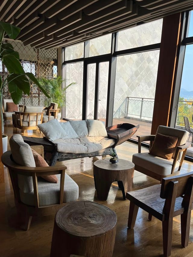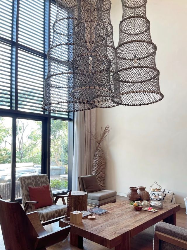 Naked Retreats by Tai Lake offers exquisitely comfortable guest rooms and suites, each furnished with luxurious furniture and modern amenities, creating a pleasant and cozy living environment. Inspired by Suzhou's traditional culture and garden landscapes, the hotel incorporates contemporary artistic elements, infusing the entire space with an artistic ambiance and refined taste. The hotel's restaurant boasts stunning aesthetics, with floor-to-ceiling windows framing picturesque views of Tai Lake—every shot looks like a postcard. Step out the back door of the restaurant, and you'll find yourself on a vast lakeside lawn, where the water feels almost within reach. A charming logo swing sits on the grass, perfect for two people to sway while watching the sunset, dialing up the romance to the max. The guest rooms exude elegance, featuring expansive floor-to-ceiling windows and living areas adorned with natural wooden decor, evoking a back-to-nature simplicity. The courtyards are surrounded by lush greenery, and ripe bayberries are available for picking and eating on the spot—absolutely delightful! Built along the hillside, the hotel primarily offers villa accommodations ranging from one to four bedrooms. I booked a two-bedroom lake-view villa, which greets you with a sprawling 100+ square meter garden complete with a swimming pool and a heated soaking pool, offering distant views of Tai Lake. The first floor includes a dining area, a Chinese-Western kitchen, a soaring living room, a bedroom suite, a guest bathroom, and a tatami area, while the second floor features a master suite with a large terrace. The sense of space is excellent, ensuring comfort even with a larger group.