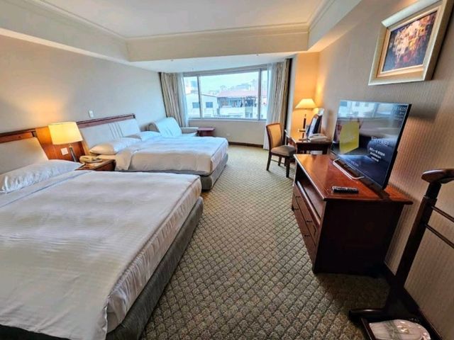 Evergreen Laurel Hotel, a five-star chain under the Evergreen Group, has several locations across Taiwan. This time, we stayed at the Taichung branch located on Taiwan Boulevard. The hotel boasts a grand Chinese-style design, exuding an impressive aura. Although it shows some signs of aging, its facade remains elegant and dignified. As expected of a star-rated hotel, the price is on the higher side. The deluxe double room is approximately 6 pings in size, featuring somewhat old-fashioned decor but still comfortable and clean. A weekday stay for two, including breakfast, costs NT$3,856. The breakfast quality is decent. The Taichung Evergreen Laurel Hotel is conveniently located near Jingming Road and Jingcheng Road, surrounded by numerous restaurants and stylish cafes. It offers a tranquil yet accessible accommodation option amidst the bustling city.