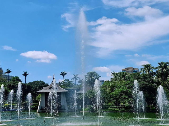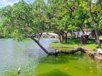 Taichung Park is huge and beautiful! It's perfect for taking the elderly for a walk! Children can also see squirrels 🐿️ and pigeons 🐦! There's also a fountain, which is great for taking photos! There's less shelter, with plenty of big trees to hide in. The park also has several children's slides, but it can get very hot in the sun and there's no shade. It's a beautiful park with a retro feel! 👍👍 #台中 #台中公園
