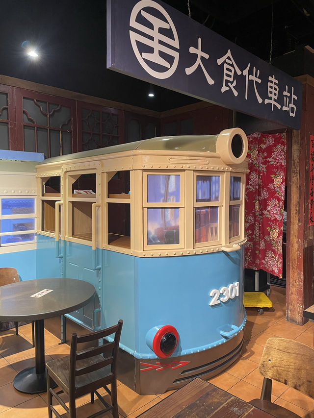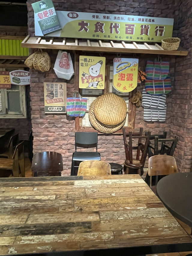 #MulticulturalTaiwaninthe1950s Entering the "Food Republic Station" at Far Eastern Department Store in Taichung, one is greeted not by the bustle of a modern food court but by the memories of a bygone era. The vintage blue tram sits quietly, as if about to transport one back to the 1950s, before Taiwan's economic takeoff—a time of multiculturalism and hard work. This journey stretches from food to history. Sesame oil chicken and oyster omelets beside a red brick stove represent the subsistence and perseverance of the local people. Opposite, the stall boasts newly arrived beef noodles from Mainland China. The encounter of these two distinct culinary cultures on the street corner is a vivid reflection of the great integration of postwar Taiwanese society. Looking around, one discovers the pervasive traces of hard work and ingenuity: old-fashioned cargo tricycles, the mainstays of street vendors and freight transport at the time, carried daily transactions and the start of the economy, reflecting the hard work and resilience of people in a time of scarcity. The modern legacy of the Japanese colonial era is deeply embedded in the city's fabric. From the design of the tram cars to the wooden trusses of the old roofs, these are fundamental symbols of Taiwan's modernity. The grocery store is plastered with Japanese-style advertisements like those for "Ichibanji," interspersed with promotional materials from the Republican era, presenting a unique landscape of cultural transformation. This isn't just a dining space; it's a living theater that condenses the three elements of "local," "Japanese colonial," and "postwar." It shows how both new immigrants and locals struggled to sustain the daily lives and economy of that era, relying on a bowl of hot snacks and a bicycle laden with goods. This heartwarming nostalgia is worth experiencing firsthand. Transportation Information Top City Taichung Far Eastern Department Store (Food Republic Food Court on the 12th Floor) • Address: No. 251, Section 3, Taiwan Avenue, Xitun District, Taichung City • Public Transportation: • Take the Taichung MRT Green Line to City Hall Station (G9), then walk for about 15-20 minutes. • Take various bus routes and get off at Shin Kong or Far Eastern Department Store. #Multicultural Taiwan #1950s Retro Style #Hard Work Before the Economic Takeoff #Sesame Oil Chicken, Beef Noodles, and Oyster Omelette #Sesame Oil Chicken, Beef Noodles, and Oyster Omelette #Timeless Taiwanese Cuisine #Tricycle #Tram and Station #Humane Grocery Store #Japanese Restaurant