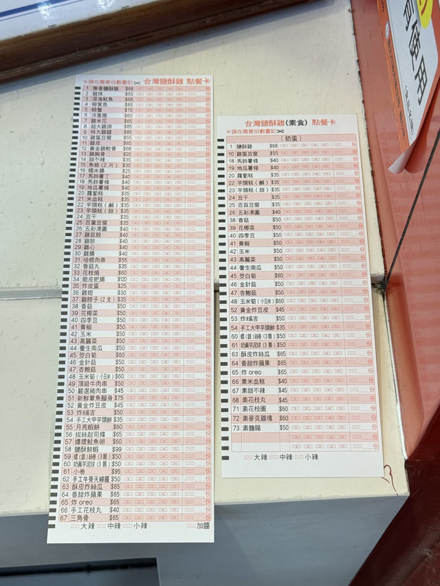 I found a fried food shop called "Taiwan Yan Su Ji" near Ximen Station in Taipei that has a wide variety of fried foods🐓 ⁡ When it comes to Yan Su Ji in Taiwan, it's mostly food stalls and you can see them everywhere, but this is the first time I've seen such a large shop that specializes in takeout Yan Su Ji😳 ⁡ And it's not just the store that's big, the number of menu items is huge, and while I was quite surprised by the number of ingredients lined up, it was fun to choose🌟 ⁡ The menu has two types, a regular menu and a vegetarian menu, with a total of 73 items‼ ️ ⁡ There are pens and two types of mark sheet menu cards next to the shop, so if you find an item you like, check it off and hand it to the staff to pay💰 ⁡ Then all you have to do is wait for your number to be called🥡 Freshly fried, hot fried food is delicious👍🏻 ⁡ ‥‥‥‥‥‥‥‥‥‥‥‥‥‥‥‥‥‥‥‥‥‥‥ 🐓 Taiwan Yan Su Ji 🐓 🏠 No. 138, Sec. 1, Zhonghua Road, Wanhua District, Taipei City, Taiwan ⁡ 🍴 From 20 NTD ‥‥‥‥‥‥‥‥‥‥‥‥‥‥‥‥‥‥‥‥‥‥‥ #Yan Su Ji #Ximending #Taiwan #TaiwanTrip #TaiwanSnacks #TaiwanGourmet #TaipeiCuisine #Taipei #taipei #taiwan #대만 #ไต้หวัน #TravelingWithMe ‥‥‥‥‥‥‥‥‥‥‥‥‥‥‥‥‥‥‥‥‥‥