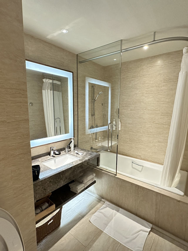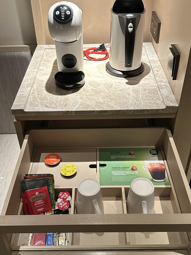This was my fourth stay. The staff were all friendly and polite, always smiling and nodding 🙂↕️. The lobby, located on the 7th floor, isn't overly spacious, but it's comfortable and bright. Behind the counter is a full-length window, creating a stylish and inviting experience from the entrance to the lobby and the back bar. The view is also stunning. There are four elevators available, so you never have to wait too long. The room was spacious and comfortable, with two double beds in a double room. The bathroom was clean and tidy, and best of all, it had a bidet! The floor-to-ceiling windows let in plenty of light, and the view was soothing. The curtains provided excellent blackout protection. Instant coffee and tea bags seemed specially curated, and there were welcome fruits and butterfly cakes. The bed was a bit firm, which was just what I liked, and the pillows were soft. The bathroom had plenty of water, and the bathtub didn't take long to fill. The toiletries, including shampoo, conditioner, and shower gel, were pleasant, quality, and refreshing. The 11th-floor gym is comfortable and clean, with stunning mountain views from the floor-to-ceiling windows. Breakfast is served at the Xu Ri Buffet on the 7th floor, and there's also Yue Liang Restaurant on the 8th floor. The hotel itself is very stylish and has a high-quality feel. City Link Department Store is right downstairs, making it very convenient. Highly recommended 👍 #Taipei #Nangangcitylink #CourtyardbyYardTaipei #TaipeiNangang #CourtyardbyYardTaipeiNangang #courtyardtaipei