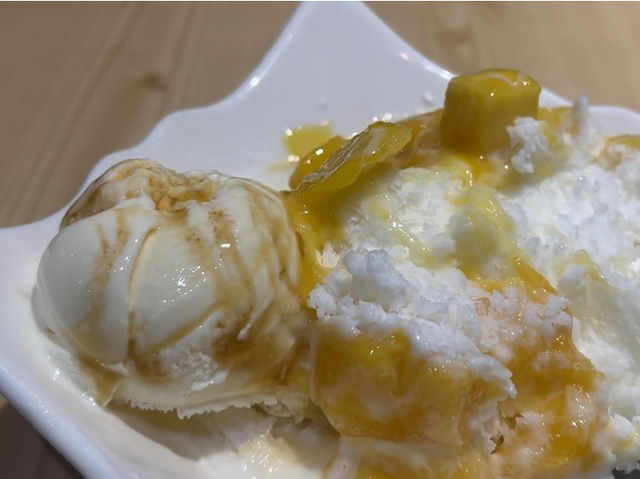 During this trip, which was primarily for work purposes, I didn’t have much time for sightseeing. However, even with limited time, I wanted to make sure to enjoy some delicious food. Since my return flight was in the evening, I had a little extra time to spare. Mango shaved ice is not something you can easily find in Japan, so it’s a must-try when visiting Taiwan. The area around Zhongshan Station (also within walking distance from Taipei Main Station) generally has higher prices, but the shaved ice here was about 1,000 yen in Japanese currency. I searched for '芒果冰' (mango shaved ice) at Taipei Main Station and found several options, eventually deciding on this shop. Its rating was around 3-3.5, so I didn’t have high expectations, but I was pleasantly surprised. It suited my taste and was delicious. The shaved ice had an amazing crunch, topped with fresh mango, condensed milk, and vanilla ice cream. For mango lovers, it’s addictive! The staff were friendly, the atmosphere was cozy, and the interior had a simple yet stylish design. When I ordered, they noticed I was Japanese and kindly provided a menu written in Japanese. With its convenient location, I’d definitely visit again. *If you search for '21街冰棧,' you’ll find detailed information, so be sure to check it out! 🥰