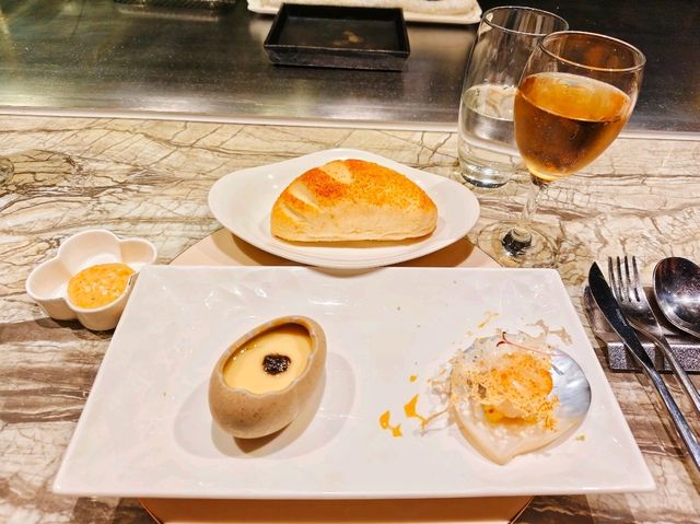 The Wowprime Group has always been favored by customers for its outstanding service. This time, I visited Chamuni New Champs-Élysées Teppanyaki (Taipei Zhongshan North Branch) for the first time❗ Upon entering, the high-end decor and the lively chatter of diners immediately set the tone, indicating the restaurant's popularity. To secure a spot, it's best to make a reservation at least a week in advance. Currently, there are three set menu options: NT$1190 (New Champs-Élysées Set), NT$1388 (Dream Wagyu Set), and NT$1488 (Steak & Surf and Turf Feast), with an additional 10% service charge. The pre-meal Parmesan cheese bread was so delicious that I couldn't resist asking for more. The sakura shrimp fried rice was refreshing and appetizing, and both dishes are refillable and can be packed to go❗ The truffle steamed egg, served in an adorable eggshell with scallops, was a visual delight❗ The design of the eggshell is just too cute 😘😚😍 This time, I dined with my husband and family. Everyone chose different main courses, so we could happily share and taste each other's dishes. The dish that amazed me the most was the pan-seared truffle filet mignon, cooked to a perfect medium rare, showcasing the tender and flavorful meat. If you order the brandy duck breast, you'll get to enjoy a flambé show🔥 right at your table. Watching the chef's performance while satisfying your hunger is truly a cool experience👍🤣🤣 The dessert did not disappoint. I chose the Pearl Avalanche Earl Grey Cake, and the moment I tasted it, I could tell the quality of the fresh cream was excellent. I'm not a big fan of sweets, but the small portion was just right and very satisfying. The ice cream was served with an edible moon-shaped cookie, further proving that Chamuni is a restaurant that caters to both the palate and the eyes❗