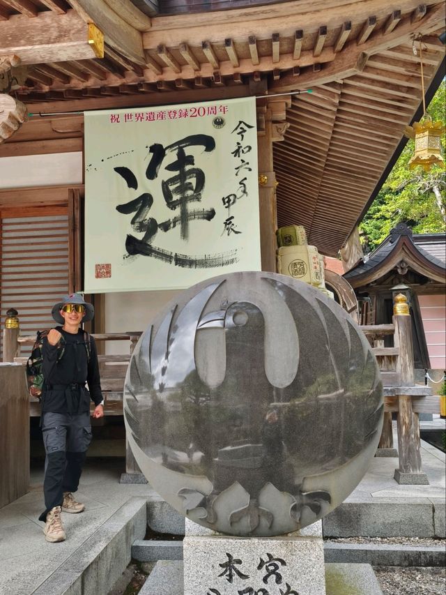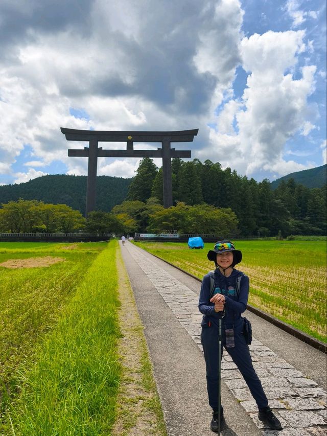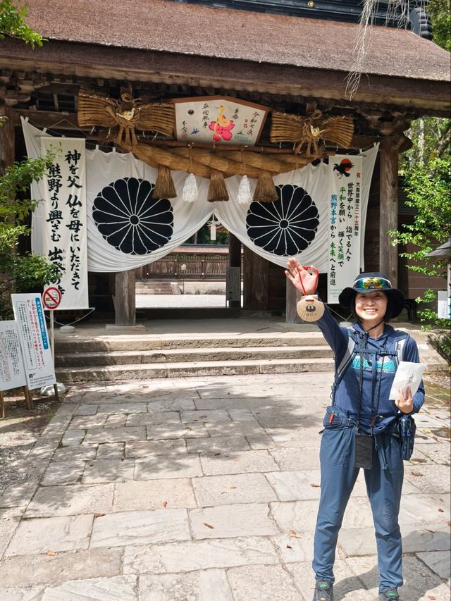 🚶♂️Kumano Kodo Nakabe Road・Day 4|Hongu Taisha Pilgrimage Day✨ After three days of challenging 13 kilometers per day, today's journey was finally a bit easier! Starting from Hoshinmon Oji, the walk to Kumano Hongu Taisha is only 8 kilometers, making for a pleasant forest walk 🌲. The route is mostly gentle slopes, and taking in the scenery along the way was particularly enjoyable. 🌟 Today's Highlight🗻 Mihara Terrace En route, we arrived at Mihara Terrace, offering a magnificent view of the former shrine grounds of Daisaigahara. Daisaigahara was once the site of Kumano Hongu Taisha, but it was destroyed by floods in 1889, prompting the relocation of the shrine hall to its current location. Today, Japan's largest torii gate stands here, towering 34 meters high. Standing beneath it and gazing up is truly breathtaking! 🙏 Kumano Hongu Taisha Shrine Today's destination is Kumano Hongu Taisha Shrine, a World Heritage site. It's the core sacred site of the Kumano Sanzan and a symbol of faith. Arriving with a sense of accomplishment, we finally set foot on a sacred site considered sacred by many pilgrims! 🍜 Miya Sushi Food and Supplies After the hike, it was time to treat ourselves! We ordered tempura udon and a grilled saury set meal at Miya Sushi, which instantly replenished our energy 💪. Then, we stopped by Ishihara Shoten for two soft serve ice cream 🍦, a perfect ending! 🥁 Double Pilgrimage Certificate After completing today's stamp collection, we first went to the Kumano Hongu Tourism Association to apply for a "Double Pilgrimage Certificate" 🎖️. This is a limited-edition honor that combines the "Camino de Santiago Pilgrimage Camino in Spain" with the "Kumano Kodo Trail in Japan"! After receiving your washi certificate, commemorative stamp, and postcard, you can then present your certificate to Kumano Hongu Taisha Shrine to play taiko drums 🥁. Finally, you can receive a limited-edition golden scallop at the shrine office – a truly ceremonial and fulfilling experience! 📍 Today's Itinerary Hoshinmon-o-ji → Suiton-o-ji → Fubai-o-ji → Batten-o-ji → Kumano Hongu Taisha Shrine → Daisaigahara, the old shrine grounds (Approximately 8 km walk, collect 5 stamps✅) Having already completed half of the Naka-bi-do route 🎉! Next up, we'll tackle the two-day trek through Komo-dake and Omo-dake. Keep it up! 💪 🏷️ #KumanoKodo #Nakabe-route #KumanoKodo #KumanoHongu-taisha #Osaigahara #World Heritage #DoublePilgrimageCertificate #JapanHiking #Pilgrimage #Miharadai #PilgrimageRoute #Hiking #JapanTravel #WakayamaTravel #TravelersDiary #HikingChallenge #MountainHealing #OutdoorLife #TravelSharing #TrailTravel #AdventureDay #JapaneseCulture #ShrineVisiting #SlowTravel #BodyHealing #PilgrimageTour #JapanMust-See #NaturalBeauty #HikingDiary