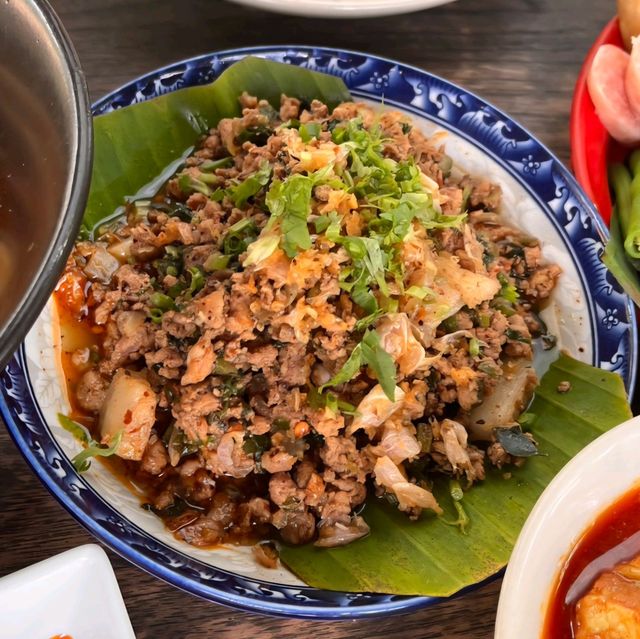 Visiting Phuket but craving Northern Thai food? "Muan Jai Sapa Kong Kin Lam", a Northern Thai restaurant in Thalang District, Phuket, offers a wide variety of authentic Northern Thai dishes at affordable prices. 😋🍲👍 In addition to savory dishes like Khao Soi, Khanom Jeen Nam Ngiao, and Nam Prik Num (rice vermicelli with pork rinds), there's also a small cafe serving drinks and homemade pastries. ☕🍰🍩 The restaurant is beautifully designed, offers a shady, clean atmosphere, and offers ample parking. 🚗🌳✨ The staff provides excellent service and plenty of photo opportunities. 📸😊💖 Most dishes are served quickly, except for grilled or baked items, which may require a wait. ⏳🔥😋 #GetDiscountsWithoutLuck #trip #tripmoments #DeliciousPhuketRestaurant #NorthernFoodInTheSouth #TravelAndEat