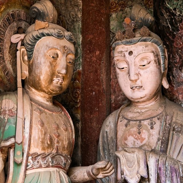 Exploring the Maijishan Cave-Temple Complex: Where East Meets West Along the Ancient Silk Road 🗿✨ Maijishan Cave-Temple Complex is a breathtaking fusion of history, faith, and art set amid towering cliffs. Step into this UNESCO gem in Tianshui and witness the magical moment Buddhism first arrived in China over 2000 years ago—spot the unmistakable Indian influences in the statues’ costumes and features and feel the wonder at this living crossroads of cultures! For your visit, plot your route along the cliffside walkways that snake up Maijishan. Start early to beat crowds—the panoramic trail reveals hundreds of caves, each packed with awe-inspiring Buddhist statues and vivid murals. Your must-do is the “North Cliff” for the biggest, most expressive sculptures; catch the sunrise for surreal lighting. The intricate corridors and windows are perfect Insta-worthy angles; aim for shots looking out over the lush green valleys, and close-ups of the statues’ faces, where ancient artistry meets cross-cultural exchange. 🧭 Practical Tips: - Address: Maiji, Tianshui, China - Hours: Apr 1–Oct 31 08:30–17:30; Nov 1–Mar 31 09:00–17:00 - Entry: CNY 35 Wear sturdy shoes—the steps and paths can be slippery after rain! Bring water, as the climb is steep and there are limited vendors inside. Respect the delicate carvings—no flash photography, and try to move quietly to soak in the spiritual atmosphere. Personal tip: Pause by the earliest caves and notice the details—the headwear and robes are distinctly Indian. It’s like seeing history carved in stone and realizing just how connected our cultures truly are! #Tianshui #Maijishan #SilkRoad #BuddhistArt #TravelChina