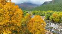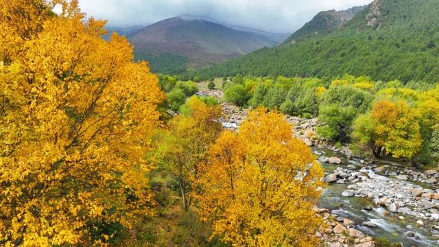 There is a place hidden within the Qilian Mountains, serene and pure, like a pristine jewel in this noisy world, a secluded paradise on earth—this is Binggou River. Binggou River, which captivates the soul, reveals a poetic and picturesque scene in autumn. Chai'er Longhai becomes gentler in the autumn breeze, its deep blue lake surface calm as a mirror, reflecting the sky and casting a heartwarming image in the water. Falling leaves tell the beautiful story of autumn, with beams of sunlight pouring over the layers of fallen leaves. The leaves dance in the wind, laying a golden carpet on the ground. Warm sunlight shines on the forest, peaceful and beautiful. Autumn at Binggou River is stunning, with a colorful ten-mile gallery to admire, distant herds leisurely grazing, and the slow life brought by mountain living to enjoy. Autumn is the most poetic season of the year, with a magic that moves the heart and makes people linger endlessly. The most beautiful form of autumn is right here at Binggou River. In autumn, Binggou River is half rich with autumn hues, half veiled in misty mountain colors. As wonderful and brilliant as a song, as gentle and dreamy as a poem.