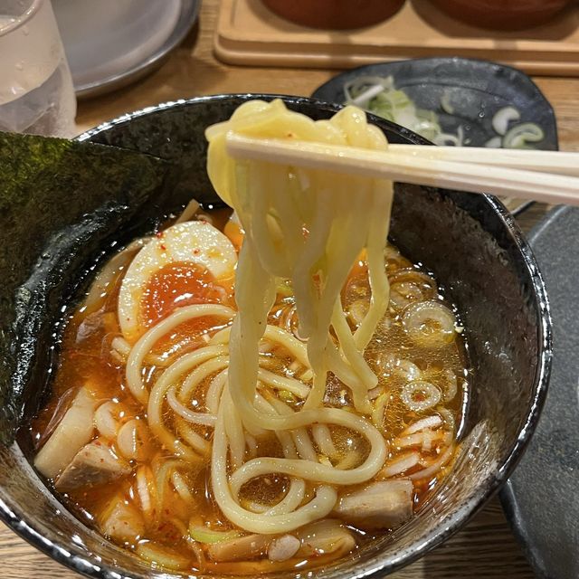#JapanTravel #TokyoTravel #Ikebukuro #Tsukemen If you come to Japan, you have to try tsukemen! I will introduce you to the tsukemen restaurant “Yasubei Tsukemen” where even locals line up to eat. First of all, I chose the spicy tsukemen because I thought it would be greasy, and they said you can choose one side menu for free when you order ramen. I added an egg separately and chose green onion as the free topping! The egg was really delicious, but my favorite was the green onion topping. It was refreshing and cut down on the greasy feeling, and most of all, the green onion was really fresh. 📍Order: You can choose one topping per ramen 📍Recommended topping: Egg, green onion 📍How to order: 1) Put money in the vending machine 2) Choose a menu 3) When the ticket comes out, give it to the staff 📍How to eat it deliciously Take an appropriate amount of noodles and dip them in the sauce, and when there is a little less than half left, add chopped onion and pepper and eat. You can feel the refreshing taste and the tanginess.