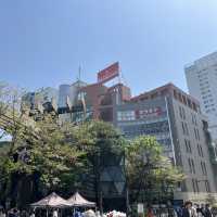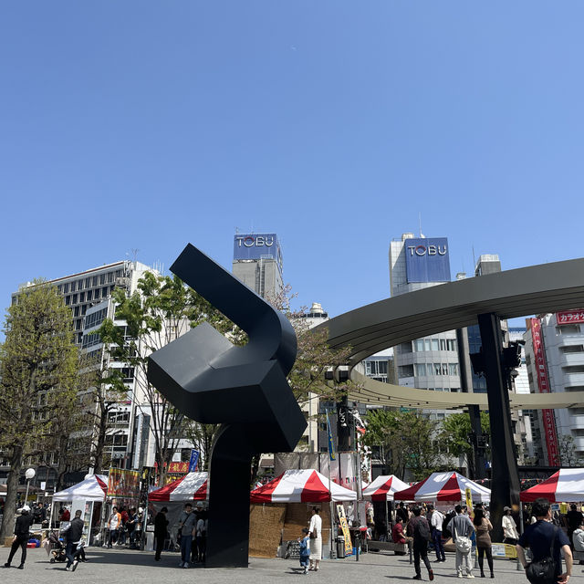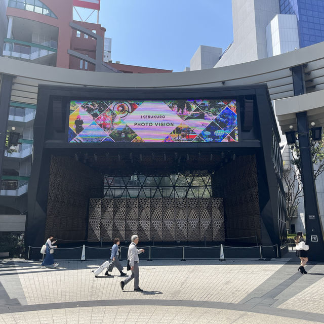 It is located in front of the Ikebukuro West Exit station. It was reborn as a new theater park "GLOBAL RING" in 2019. There is no longer any of the dangerous image of Ikebukuro in the past, and it is a very clean square with an outdoor stage and stylish cafes. There is also a fountain, and many parents and children visit during the day, making it a very peaceful space. Looking up, there is a ring-shaped object that can be enjoyed artistically. There are also lights at night, and the illuminations are beautiful during the Christmas season. Various events are held on weekends, and it is crowded with many people. #Sakura2024 #IkebukuroWestExitPark