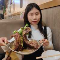 Southeast Asian cuisine has always been my first choice. I have eaten at this restaurant in Tsuen Wan several times before. Every time I eat it, I feel good. There are often many people queuing up to help. In addition to the good greetings of the staff, of course the food has such quality and standard. We ordered a three-person set this time😋 We chose volcano ribs, charcoal-grilled pork neck, minced meat lettuce bun and Vietnamese locomotive rice noodles The three-person set portion is actually quite a lot, after eating super full super full, seeing many people order volcano ribs, the taste is indeed good, the sauce is very tasty, ribs meat is very tender, pork neck is our favorite to eat, pieces are very fragrant, one of the must-order dishes, locomotive rice noodles with beef three treasures, lettuce wrapped minced meat a bit spicy, But the taste is very good, mango glutinous rice portion is also not much, mango is very sweet, come to try, longan ice is very sweet and thirst-quenching, large cups very good to drink, next time come to drink again, restaurant near Tsuen Wan Plaza, location is quite good, staff service is very good, restaurant price is very high, so next time to Tsuen Wan will choose 😊