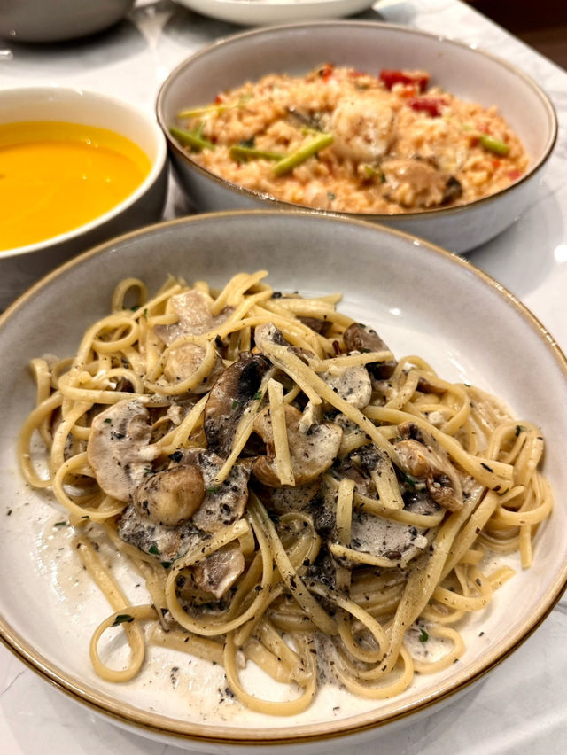 Lizto, which opened in mid-July at Tsuen Wan New Terrace Mall, is decorated in a warm light wood color, focusing on high-quality coffee and handmade pasta. 🍽️ Pasta with Mushroom Truffle Cream Sauce $118 The portion of assorted mushrooms is plentiful, the pasta is cooked just right, the sauce is not sticky, and the truffle cream sauce is smooth and not thick 🍤 Black Truffle Shrimp Toast (Half) +$28 The caramelized toast is very loose when you bite into it. The outer layer is fried very crispy but not too hard. The inner layer is sandwiched with bouncy black truffle sauce shrimp paste 🍰 Pistachio Basque Cheesecake +$38 The cake is smooth and flat, with a hint of pistachio nut sourness and cheese light, and is not sweet 🍽️ Seafood Pasta $178 Full of tomato-flavored sauce, enveloping each grain of smoky and slightly chewy rice, ingredients are bacon, fried scallops, mussels, cherry tomatoes, radish, and red peppercorns 🧀 Gillette Mozzarella Cheese Strips (Half) +$8 The crust is crispy on the outside, the cheese is threaded on the inside, and served with 2 appetizing specialty sauces, one is a sour cream with fresh lemon juice, and the other is a slightly spicy sauce with sweet watermelon juice 🍨 Affogato +$28 A must order! 👍🏻 The sour and bright espresso, paired with vanilla ice cream, the overall taste is sweet and bitter with sweetness, more prominent the coffee sweetness _______________ Lizto (Tsun Wan) Shop G75A, G76C & G76D, G/F, Tsuen Wan New Terrace, 1 Yeung Uk Road, Tsuen Wan _______________ #hkfoodies #hkfoodie #foodies #foodie #room_host #Register September Hotel Sleep Tester 2025 #September Good Places 2025