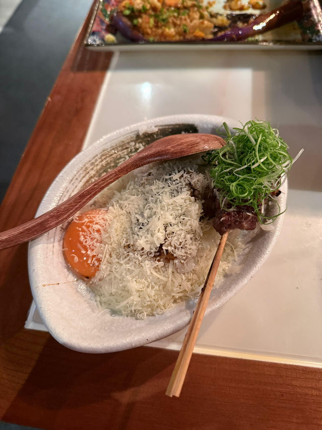 The BBQ Hall offers great value for money, and this time I went back with my friends for another round. You still need to book a table in advance, as it's quite popular even on weekdays. One thing worth praising is that the food doesn't take long to be served! Additionally, each table has a small stove to keep the food warm, which is a very thoughtful touch. 👍 Here’s what we ordered this time, and they were all pretty good: Wagyu Beef Stick (served with truffle rice) This was introduced as a new item on the menu, so we decided to try it. It's a must-try! When served, they add cheese on the spot and even teach you how to eat it. Mix the egg with the rice, and eat the Wagyu beef in three portions—one bite of beef followed by one bite of rice. The rice is incredibly fragrant with egg and truffle flavors, and the Wagyu beef melts in your mouth. Amazing! 🤤 Salt-grilled Beef Tongue A must-order every time we visit! The beef tongue is incredibly tender and flavorful. Secret Recipe Grilled Lamb Rack Rich lamb flavor without the gamey taste. The pieces are large, tender, and juicy—every bite is satisfying! (*^^*) Brown Sugar Eel Cheese Tamagoyaki The tamagoyaki is caramelized, giving it a sweet and crispy texture. Inside, it’s filled with eel and cheese, making the flavor very rich! Spicy Squid Tentacles ($22) We underestimated the spiciness! 🤣🤣 The squid tentacles are chewy and refreshing but very spicy! Mountain Yam with Mentaiko Covered in mentaiko sauce and paired with crunchy mountain yam—truly satisfying! Honey Grilled Pineapple 🍍 Big chunks of pineapple, super juicy. Since my friends don’t drink alcohol, we didn’t take advantage of the buy-one-get-one-free Sapporo draft beer deal. Instead, we ordered fresh coconut water and Mango Yogurt Drink, both of which were very refreshing! BBQ Hall (Tsuen Wan) Address: 12/F, Bayview Plaza, 118 Chuen Lung Street, Tsuen Wan