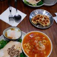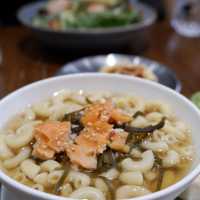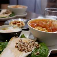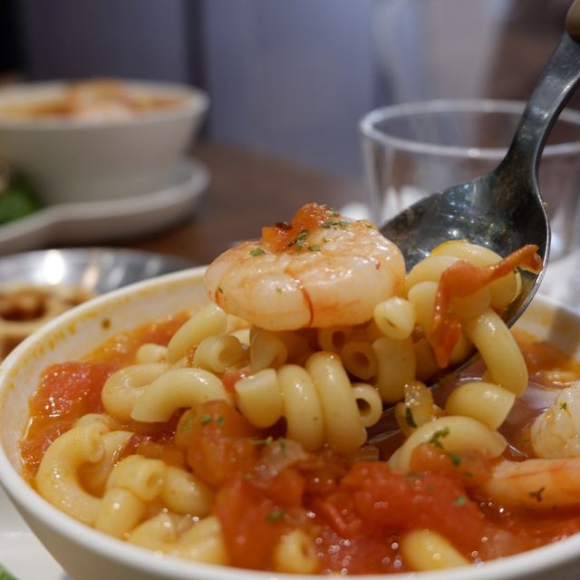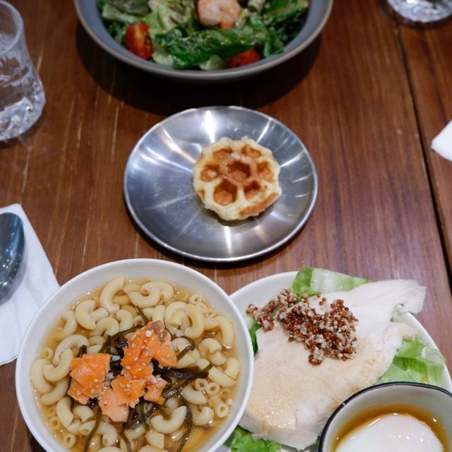 Today at noon, a group of friends went to the restaurant downstairs to have lunch after a party. One of our friends had a good meal there and the price was reasonable for the area, so six of us had a meal together, but it was a pity that we couldn't sit together. 📍Location: Near Tuen Mun Swimming Pool Light Rail Station, about ten minutes walk. 🏠Environment: There is floor-to-ceiling glass at the door, and the interior is L-shaped. On the left is the bar, and nearby are plants from Costa Rica, which are very special, a bit like a swollen banyan tree. On the right is a booth, with not much space, and the kitchen takes up half of it. 🤵🏻Service: Get your own cutlery and pour water, no extra charge. 🍽️Lunch: Two all-day breakfast options are available, no set menu. Smoked salmon macaroni in bonito broth $48 In addition to macaroni, there are also slow-cooked chicken breast, quinoa, hot spring eggs and waffles. The fish soup has a light taste, the macaroni is soft and chewy, the chicken breast is slightly fried, the meat is a little dry, but tender, the waffles are a bit sweet and have an eggy aroma. Overall it's good 👍🏻. Shrimp macaroni in tomato soup $48 This is another common dish, tomato macaroni with slow-cooked salt koji chicken breast salad, poached egg and waffles. The tomato soup is very rich and the macaroni is just the right firmness. This soup base is better than the bonito soup, everything else is the same. Avocado sauce shrimp salad 🥗 $68 This was ordered by a friend. It looked attractive, with half a soft-boiled egg, shrimp and salad. I haven't tried it, so I don't know how it tastes, but my friend was satisfied. Spores 📍Shop G15, G/F, Tuen Mun Central Plaza, 22 Hoi Wing Road, Tuen Mun #hkcafe #foodie #localtourism #summerfoodie #cafe #hkfoodie #tuenmunfood #tuenmun #placestogointuenmun
