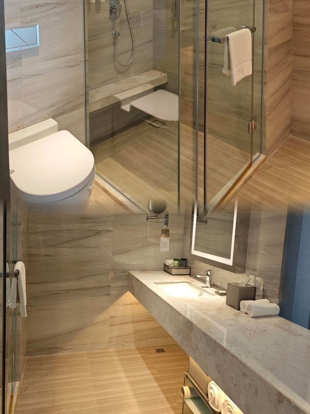 Courtyard by Marriott Haicang Taidi Hotel Stay Experience 🏘️Room Type/Layout: This stay was in a larger 270-degree sea view room. Stepping in from the entrance, the floor-to-ceiling windows act like a "frameless picture frame," capturing the entire view of Haicang Bay. The room faces the southern side of Haicang Bay, with the continuous green ridge of Caijianwei Mountain on the left, the bustling Xiamen Island skyline on the right, and the shimmering sea with passing boats below. Opening the window, you can also see iconic landmarks on the opposite shore such as Sunlight Rock and Bagua Building on Gulangyu Island, together with Haicang Bridge forming a classic "mountain-sea-city" scene with an excellent view. 🛌Amenities/Facilities: - The room’s curtain track is motorized and can be opened or closed with one button on the bedside control panel, easily switching between "panorama mode" and "privacy mode," very convenient. - The hotel is equipped with a gym and a rooftop swimming pool, which also offers sea views, allowing you to enjoy the scenery while exercising or relaxing. - Overall, the facilities are standard, with a simple design for the room and lobby, similar to the Element by Westin level. 🧹Soundproofing/Cleanliness: No obvious issues; soundproofing and cleanliness are presumed to be well maintained. 🍽️Dining Experience: The hotel breakfast is rich and diverse, offering Fujian specialties such as fish ball soup and Fuding pork slices, catering to different tastes. Additionally, this Courtyard shares the breakfast hall and facilities with the Marriott hotel located in the same area, but Courtyard guests cannot use the Marriott lounge. 💁Service Experience: The service is professional and attentive, providing Platinum members with 500 welcome points, along with a choice of snacks and drinks, plus complimentary welcome fruit, showing care in the details. 💰Average Cost: The hotel offers excellent value, with prices less than 200 yuan difference compared to the Marriott in the same area. If you are in a hurry or mainly need to rack up room nights, Courtyard is a good choice; if you want a better stay experience, consider the Marriott. 💗Other Tips: - Regarding transportation, there are few dining options near the hotel, so you need to take a taxi to eat out. - Overall, the hotel performs well in terms of view, value, and basic services, suitable for stays when catching high-speed trains or attending events, providing a comfortable lodging experience.