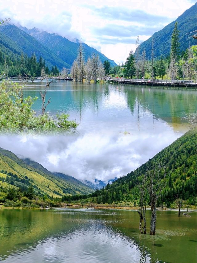 Double Bridge Groove - Jade Rabbit Peak, super beautiful photo spot! 🏔🍃 Of course I have to recommend it to everyone! The scenery here is crazy beautiful🔥! It’s perfectly suited whether you’re new to travel or an experienced adventurer. The best thing is that the transportation is convenient enough, want to easily and freely walk without difficulty, definitely do not have to be afraid of hands and feet! If you encounter good weather, the camera casually clicks on the postcard feel, sooo beautiful! The entire Double Bridge Groove Scenic Area, exploration takes about 2-4 hours, easy to take a shuttle bus tour - the highest point although there will be a little alpine reaction, but do not worry, usually not serious. You drive from Chengdu, it takes 4-5 hours to get there, on the way you will cross 3500 meters above sea level, remember to be prepared to prevent high altitude! When autumn comes, the forest fades super fantastic, green and yellow intertwined, no human touch, fully blending into the embrace of nature. Snow-capped mountains and glaciers + blue sky and white clouds + beautiful trees, even breathing chills! (📸) 📍Double Bridge Groove Scenic Area Address: Within the territory of Siguniang Mountain Town, Xiaojin County, Aba Tibetan and Qiang Autonomous Prefecture, Sichuan Province Opening hours: 08:00 - 17:00 Want to escape the world and rest and have beautiful photos to harvest, the double bridge ditch is really perfect! Absolutely push ~~