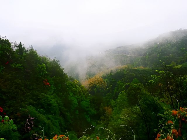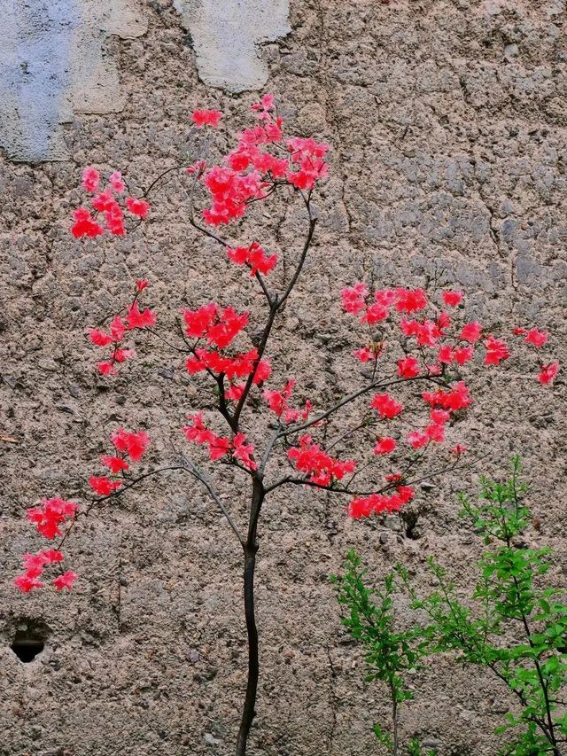 Hiking the Anshan Ancient Trail. From Xiaoquanzixiang to Jianguocun to Anshancun, about 10 kilometers. The small mountain village is very quiet, the villagers are busy picking tea in the tea gardens, cherry blossoms are in full bloom by the stream, and the rapeseed flowers are about to wither, with seeds forming. Azaleas are planted in front of the adobe houses. Drizzle and mist, the cobblestone road is wet and slippery, challenging to walk on, comparable to the effect of a fascia ball. The path is clear, with signs at the forks, not difficult to find. Follow the Xiaoquan stream to the Jin Suo Bridge. There are quite a few tourists during the festival, and nowadays people are everywhere, it's not easy to find deep mountains and old forests. Of course, compared to Hangzhou and Nanjing, these hundred or so people are negligible. The weathered lion faces on the bridge show the erosion of wind and rain. Walking into the mountains, amidst the deep and shallow greens, there are interspersed light purple and red azaleas. The stream babbles along, accompanying us. Where does this clear and lively water originate from, and where does it ultimately flow to? Old friends are also entangled in trivial matters, this rare gathering is filled with laughter and joy. The stream is blocked by the mountain terrain, taking a big turn, with spring's new leaves, flowers on the cliffs, reeds by the river beach, and the rushing stream. Standing on the small bridge, we silently watch, lost in the thick greenery. Resting and drinking water at the entrance of Jianguocun, watching an old man picking tea. Wearing a bamboo hat, carrying a tea basket, with busy hands and a calm face, he has the expression of someone who belongs to the field, who silently takes on everything and makes it all seem natural. In silence and effort, slowly reshaping life and meaning. Perhaps this is the silence that belongs only to farmers. The misty waters stretch far, walking along the green stream, passing Huguoan, standing for a while at the Feilong Waterfall, which is long like white silk, breaking through the green mountains. Seeing many people, we did not stay, but continued uphill. Feilong Station has two wooden chairs with backs, sitting and watching the mountains, a luxurious resting place. It started to rain, wearing a raincoat was too stuffy, but not wearing it risked getting the camera wet, after much deliberation, I put on the raincoat, the camera is more important than me. The wind blows through the new leaves of the treetops, the mist spreads to the mountaintop, standing in front of the star-gazing tower in Jianguocun, trying to make out the contours of the terraced fields in the mist, but failing. The dinner was sumptuous, with chicken soup, pan-fried stream fish, braised pork, stir-fried bacon with bamboo shoots, scallion omelet, and taro dumpling soup. The landlady specially went to the mountains to pick mugwort and made two types of green dumplings, one with pickled vegetable, bamboo shoot, dried tofu, and minced meat filling, and the other with sesame and red bean paste filling, pleasing both sweet and savory lovers, who praised it highly. After dinner, we sang karaoke, drank tea, and cracked sunflower seeds, those who liked to drink continued to urge each other to drink more, the middle-aged sorrows and melancholy turned into a few tears in the wine.